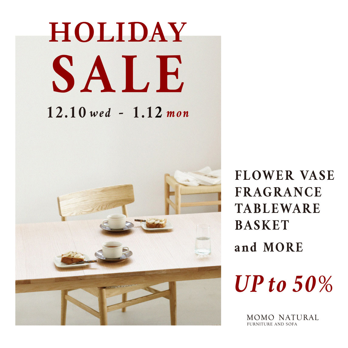 モモ ナチュラル実店舗では、2025/12/10(水)~2026/1/12(月・祝)の期間中、[HOLIDAY SALE] を開催します。
